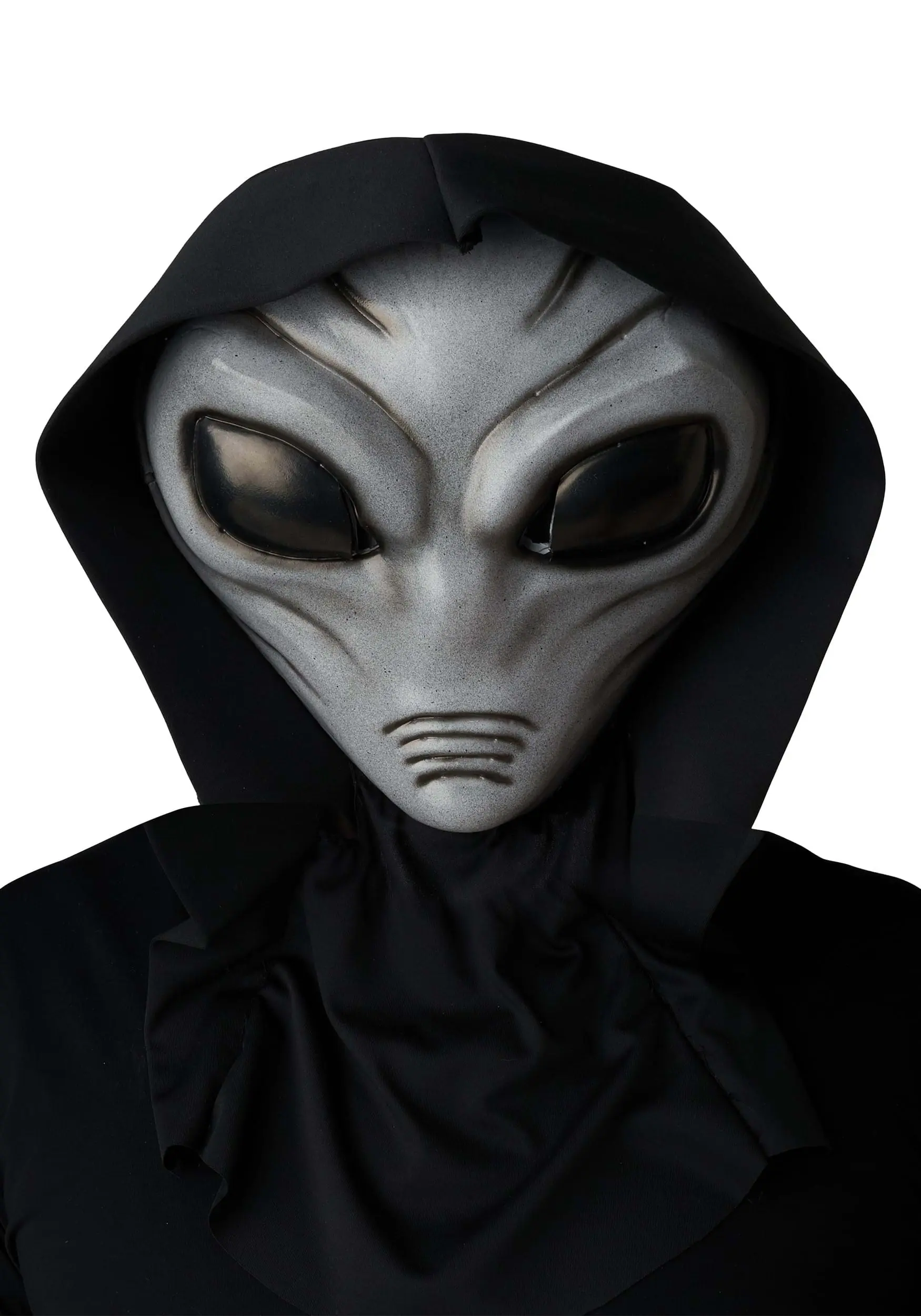 Do you come in peace? Your Grey Alien Light Up Mask for Adults will transform you into a creature from another planet! The molded plastic and polyester mask is shaped with imaginative alien features including huge, dark eyes that hide viewing ports. Insert two AA batteries to have it light up!