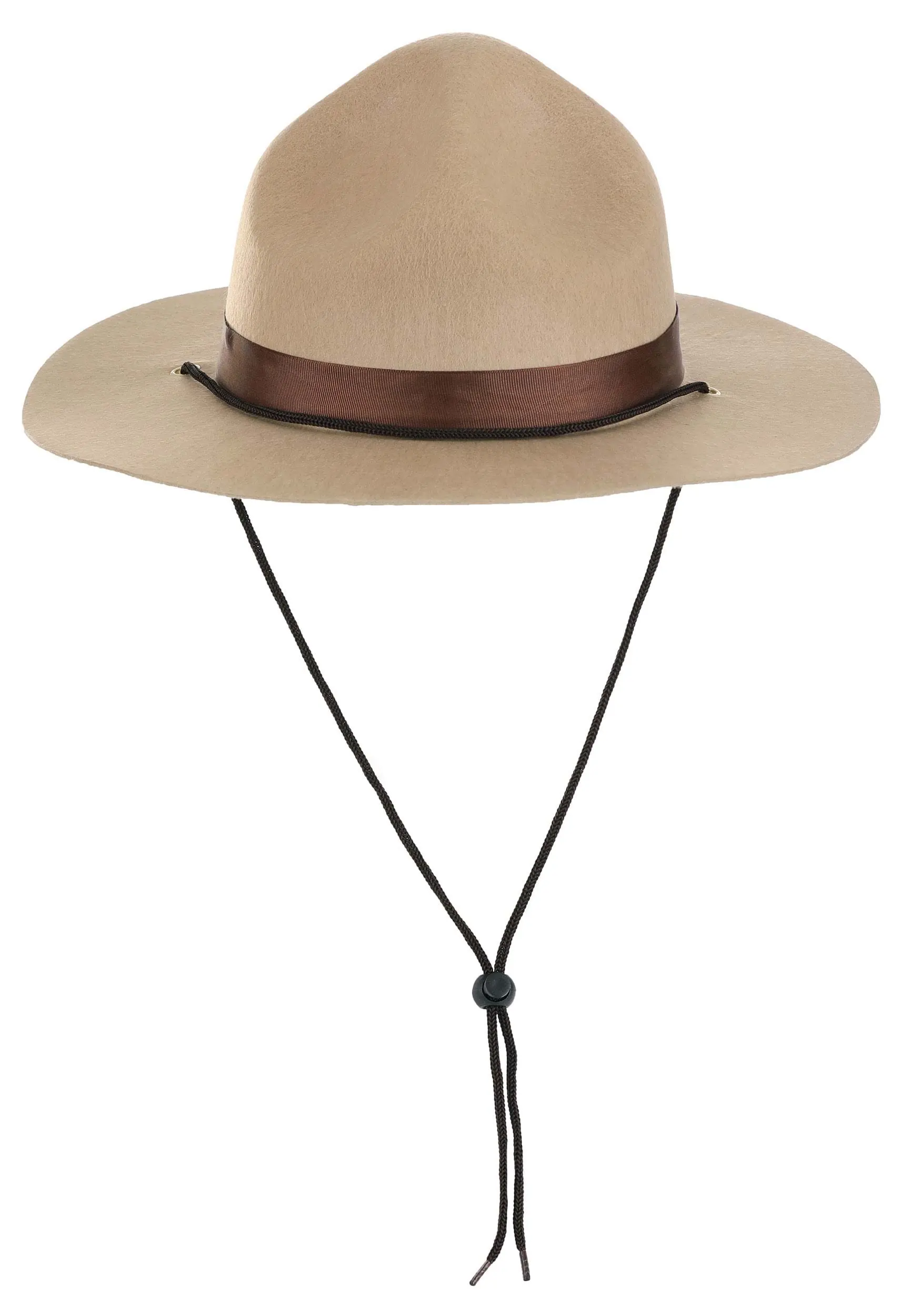 Look extra official in this Mountie Costume Hat for Adults! The beige felt hat has a wide brim around a domed crown that’s decorated with an attached brown ribbon. The matching chin cord has a plastic lock that can be adjusted for size.