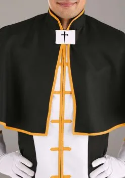 Make sure that you are looking refined when you stand among the other priests or anime adventurers when you deck yourself out in this Holy Priest costume. This is a Made By Us robe that will have you in fighting form thanks to the long black robe and bright gold accents. The robe zips up the front and the tab remains hidden behind the white cross collar held in place by hook and loops. The capelet is attached to the robe, too, so you won’t have to worry about losing any official part of your ceremonial garb. (No distracting demons will have the upper hand on you!)