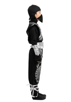 Help your tyke channel their mystical might when you give them this Child Dragon Ninja costume. This ensemble includes all that your kiddo will need to feel like they stepped right out of an epic video game or anime! The black jumpsuit features metallic printing that looks like a soaring dragon tail. Ribbons at the legs and an attached black hood create a silhouette that will have your kid feeling a real part of the fun. Kid-safe, foam weaponry can be worn on the silver belt or held in hand for an action-packed look. They include faux ninja stars and two foam kunai with open loops for your kiddo’s fingers. They’re just perfect with the fingerless gloves that finish off your little ninja’s transformation.