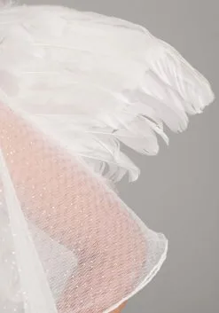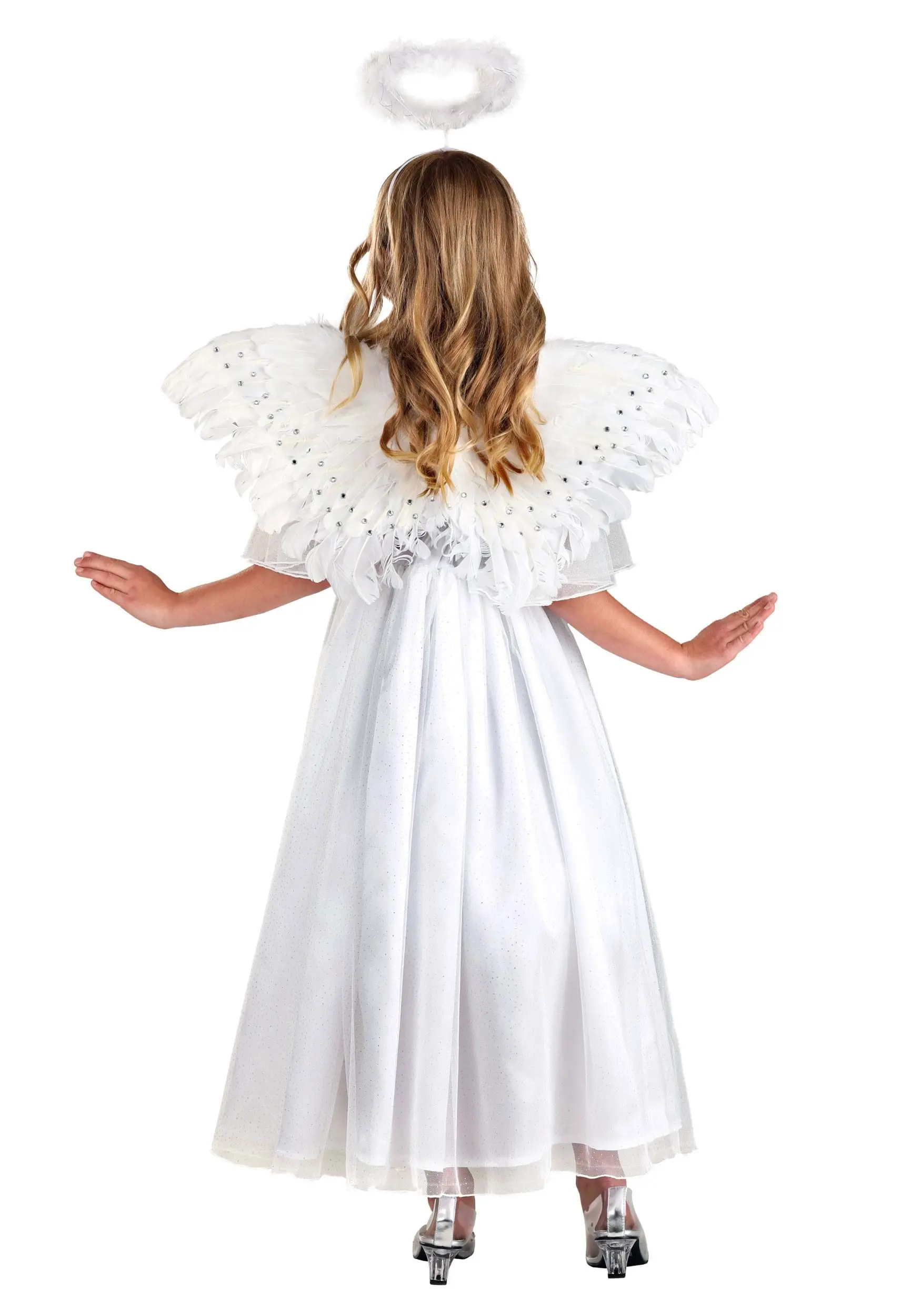 Your child will certainly shine when she puts on this Shimmering Angel Costume! Our design teams have worked hard to create a costume that will bring out the best in your child this Halloween. The white dress has shiny silver straps and a silver belt. The belt and the collar of the dress also feature beautiful iridescent faux gems. The white dress has a tulle overlay with glittery dots that give the whole outfit some extra sparkle. Of course, an angel can’t fly down from heaven without its wings! The white feathered wings also have some extra shine in the form of round faux gems along the edges. The finishing detail is a fluffy halo connected to a headband that will look like it’s floating above your child’s head. We’re pretty sure that any kid who wears this beautiful costume will feel like treating, not tricking!