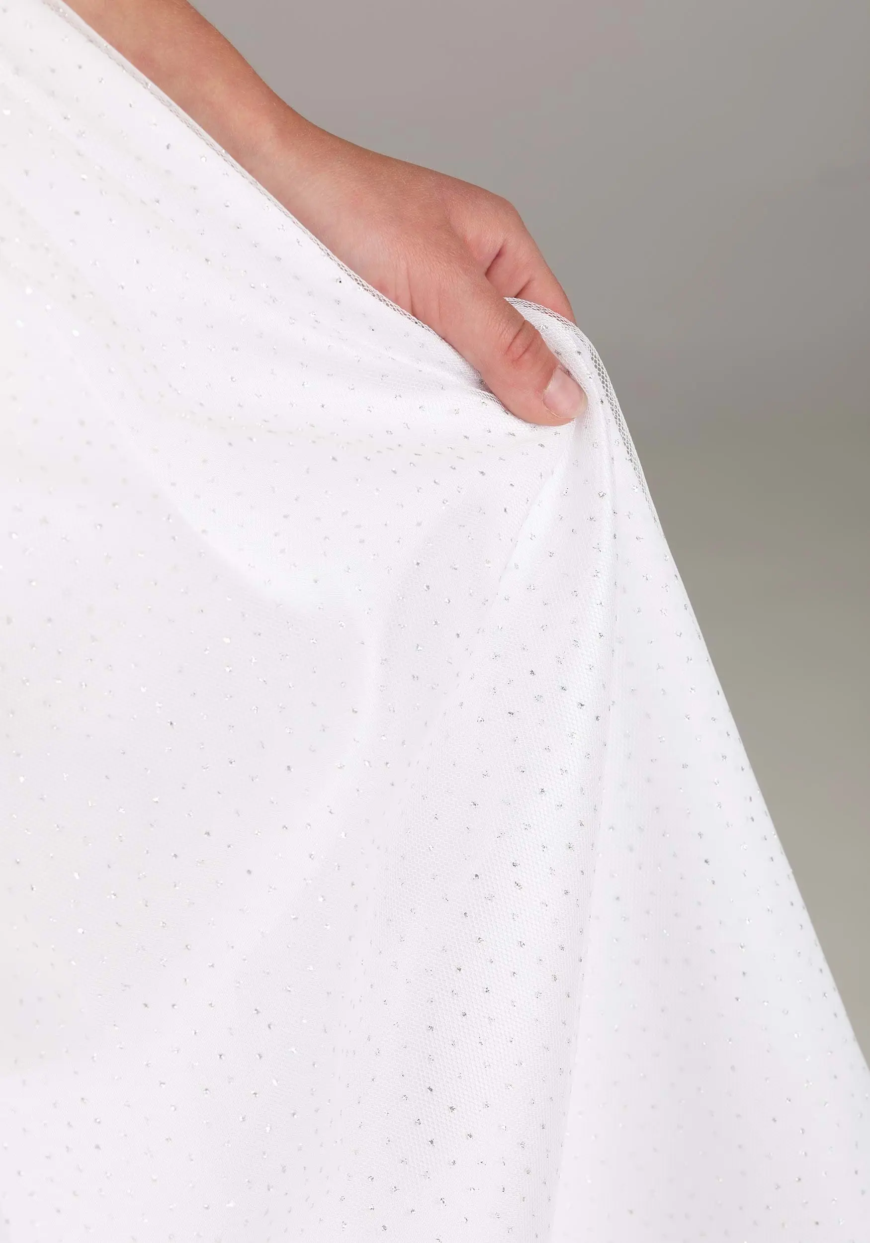 - 100% polyester satin, jersey knit, and tulle fabrics